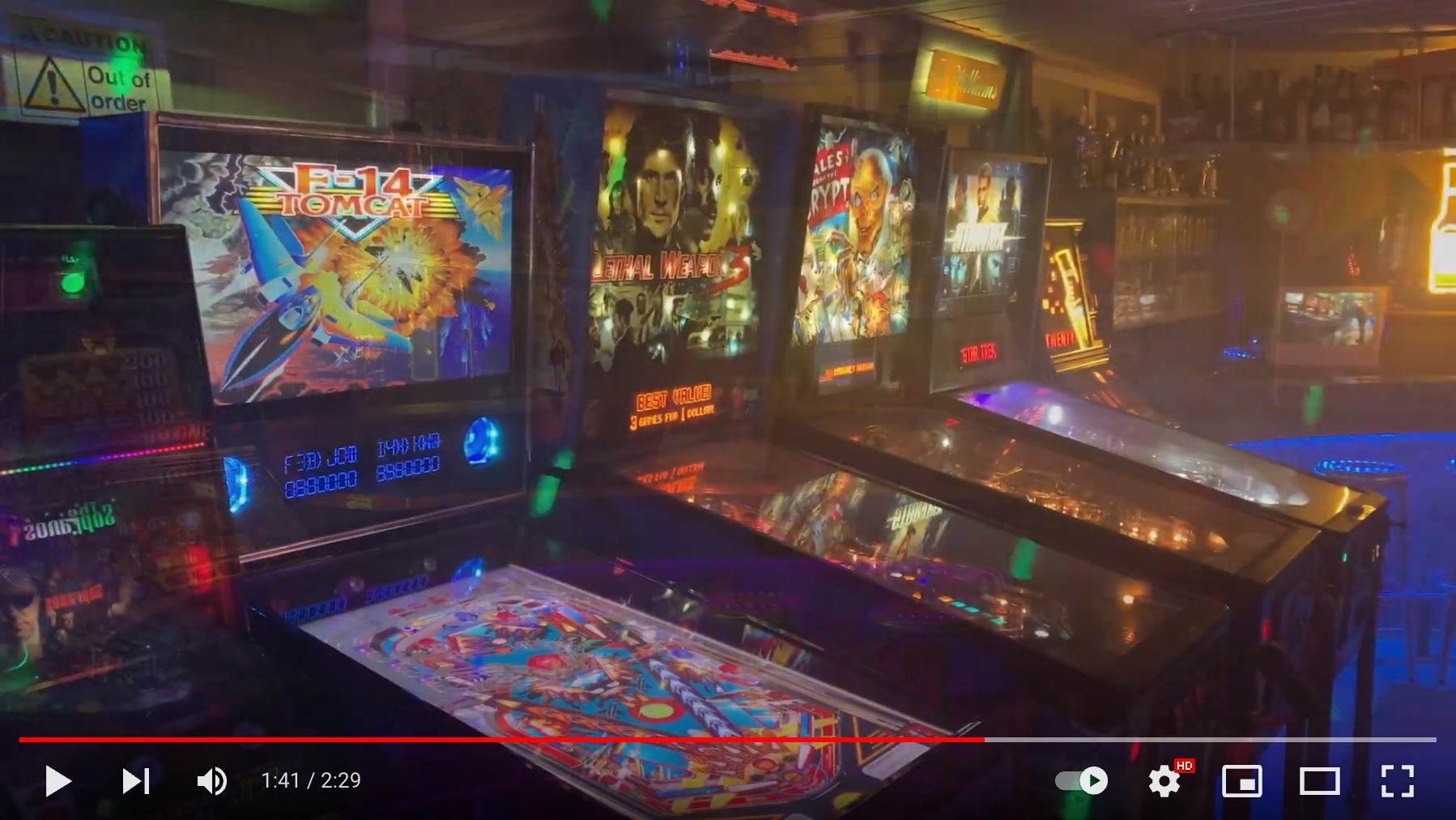 De game room zoals hij er in 2021 uitziet. Er is een aantal flipperkasten vertrokken om ruimte te maken voor een gezellige zithoek met beamer en karaoke-opstelling. https://youtu.be/WyCzPC_V-H4