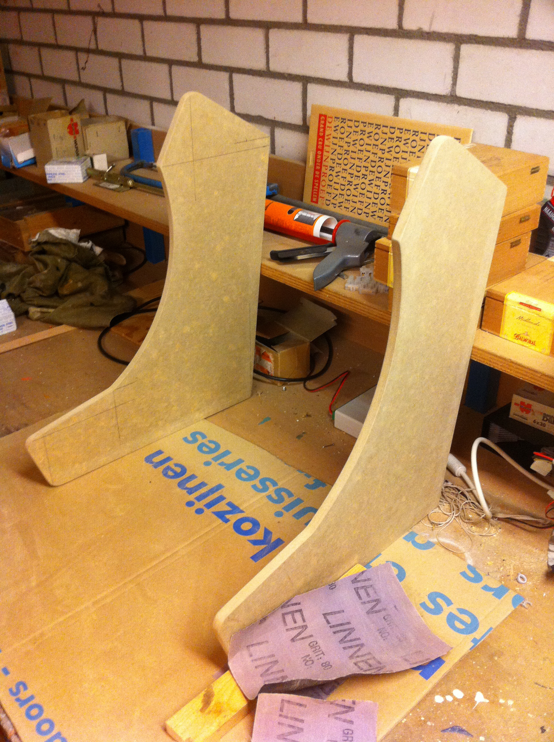 De panelen voor de houten kast (MDF) heb ik laten zagen door een houtbewerkingsbedrijf. Ik kon hier zelf aan de slag gaan, maar ik krijg het nooit zo netjes als wanneer het met CNC gestuurd materiaal wordt gezaagd.