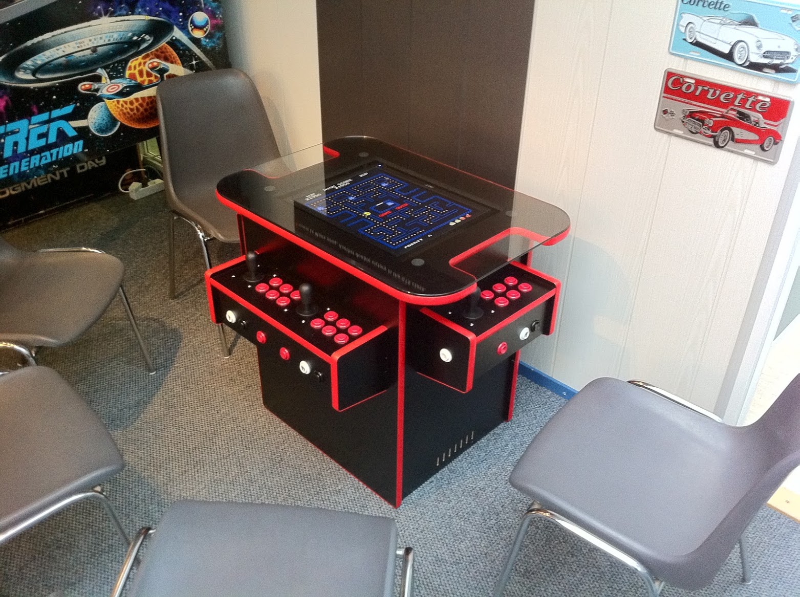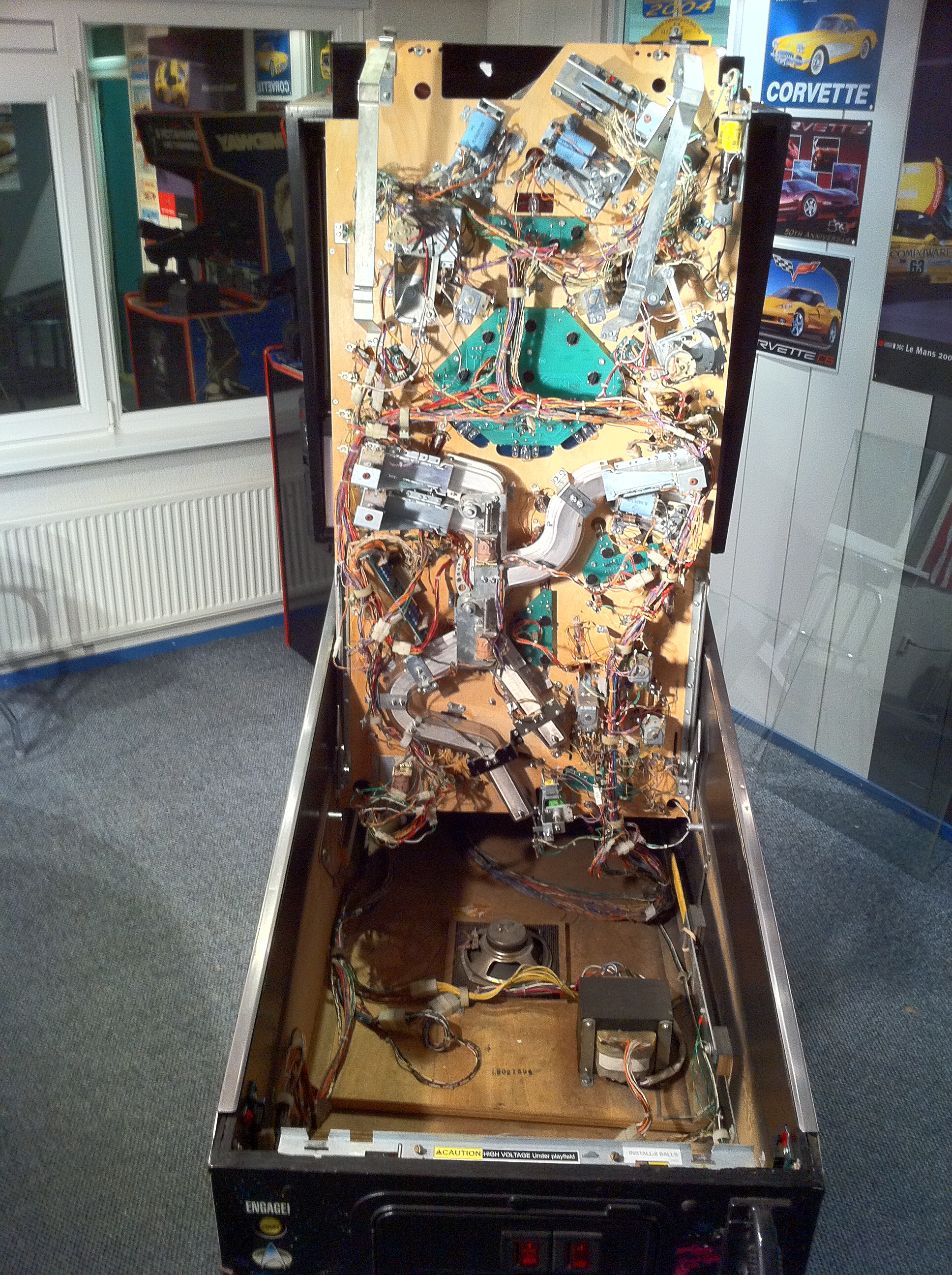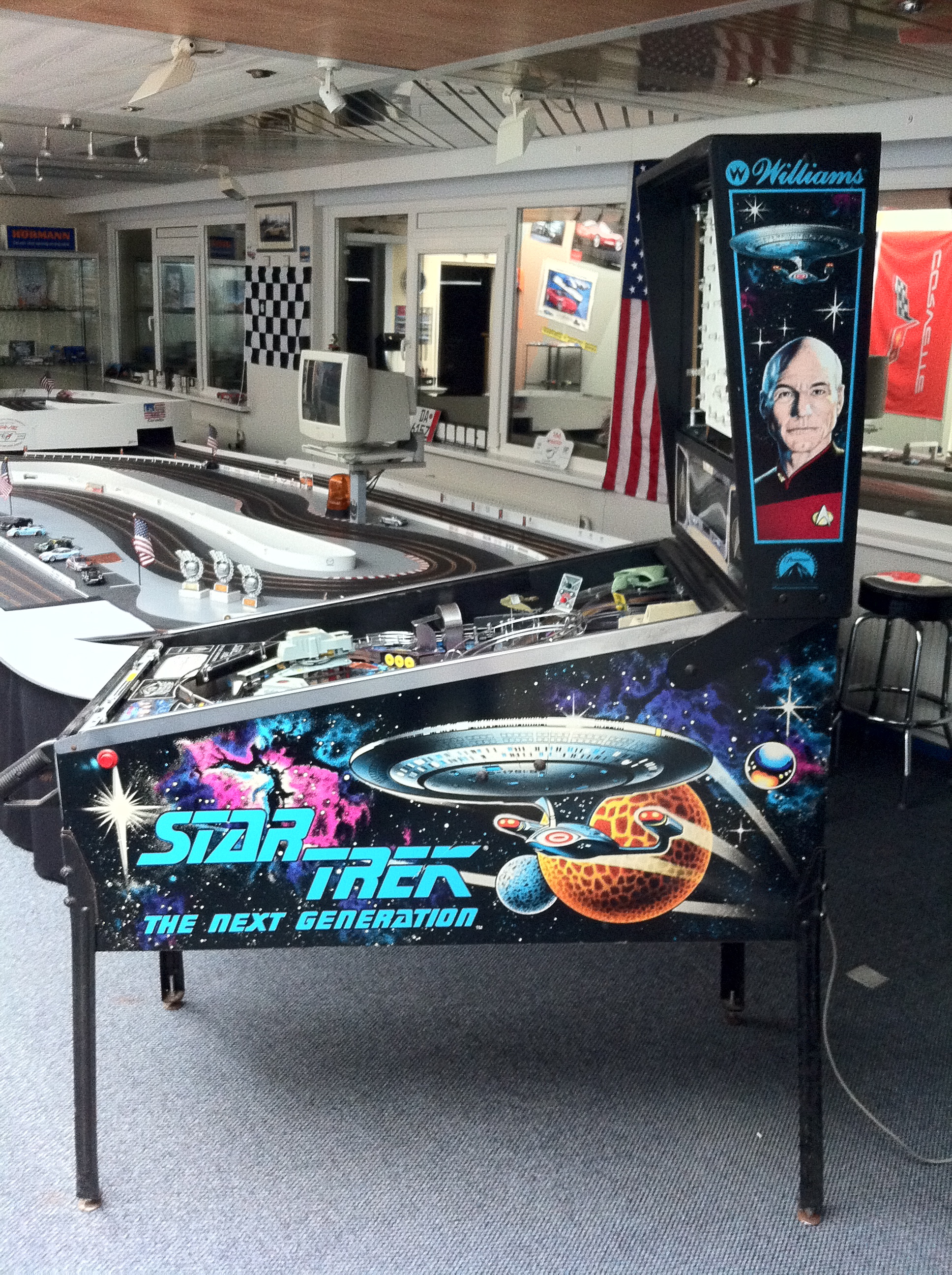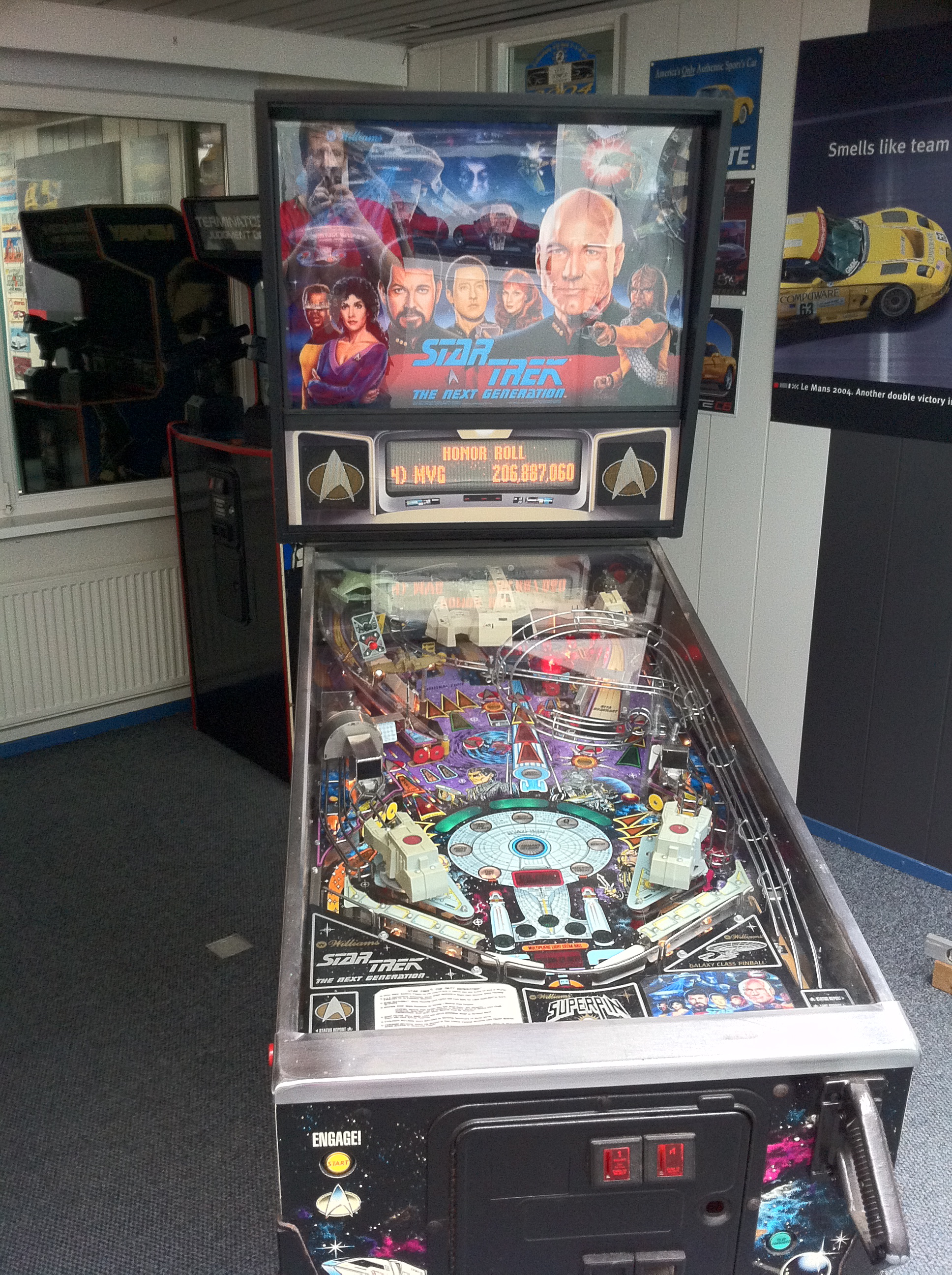 “Ook een flipperkast mag eigenlijk niet ontbreken!” Dit commentaar van een bezoeker zette me aan het denken. Jaren terug had ik me ook eens in de aanschaf van een flipperkast verdiept, maar plaatsgebrek thuis prikte dat plannetje al snel lek. In de Game Room had ik echter ruimte genoeg, dus ging ik me weer eens verdiepen in de flipperkasten en schafte ik in april 2011 een Star Trek: The Next Generation flipperkast aan. Man, wat een lol heb je met zo’n flipper (als ie werkt)! En wat een frustratie als ie niet werkt (zo zou het komende anderhalf jaar blijken).