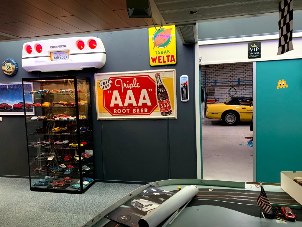 Het is altijd leuk om hobby’s te combineren. Corvettes in de gameroom bijvoorbeeld. Ik had al een vitrinekast vol schaalmodellen en een groot aantal kleine exemplaren op mijn slotracebaan maar in mijn hoofd zat iets groters…