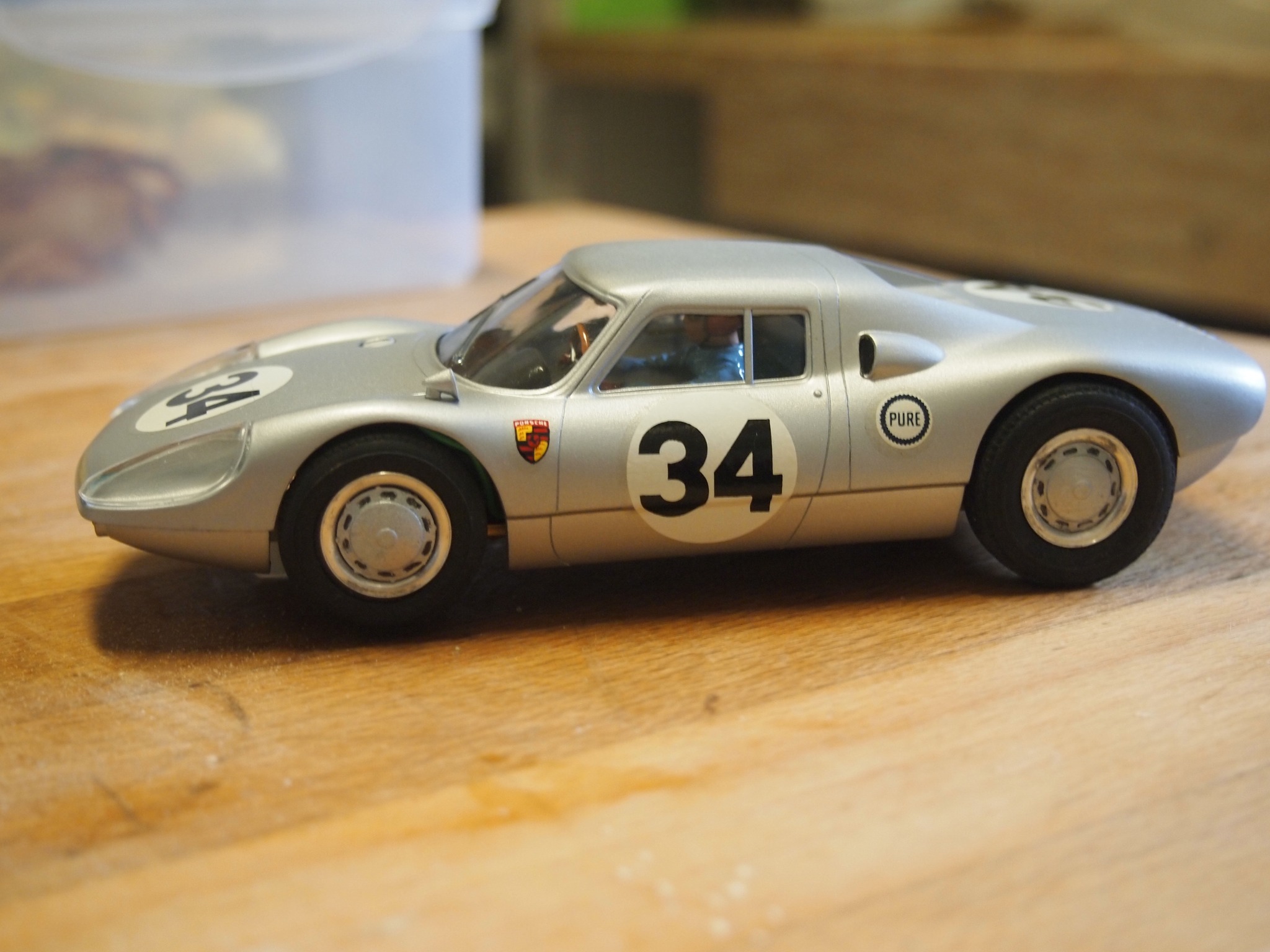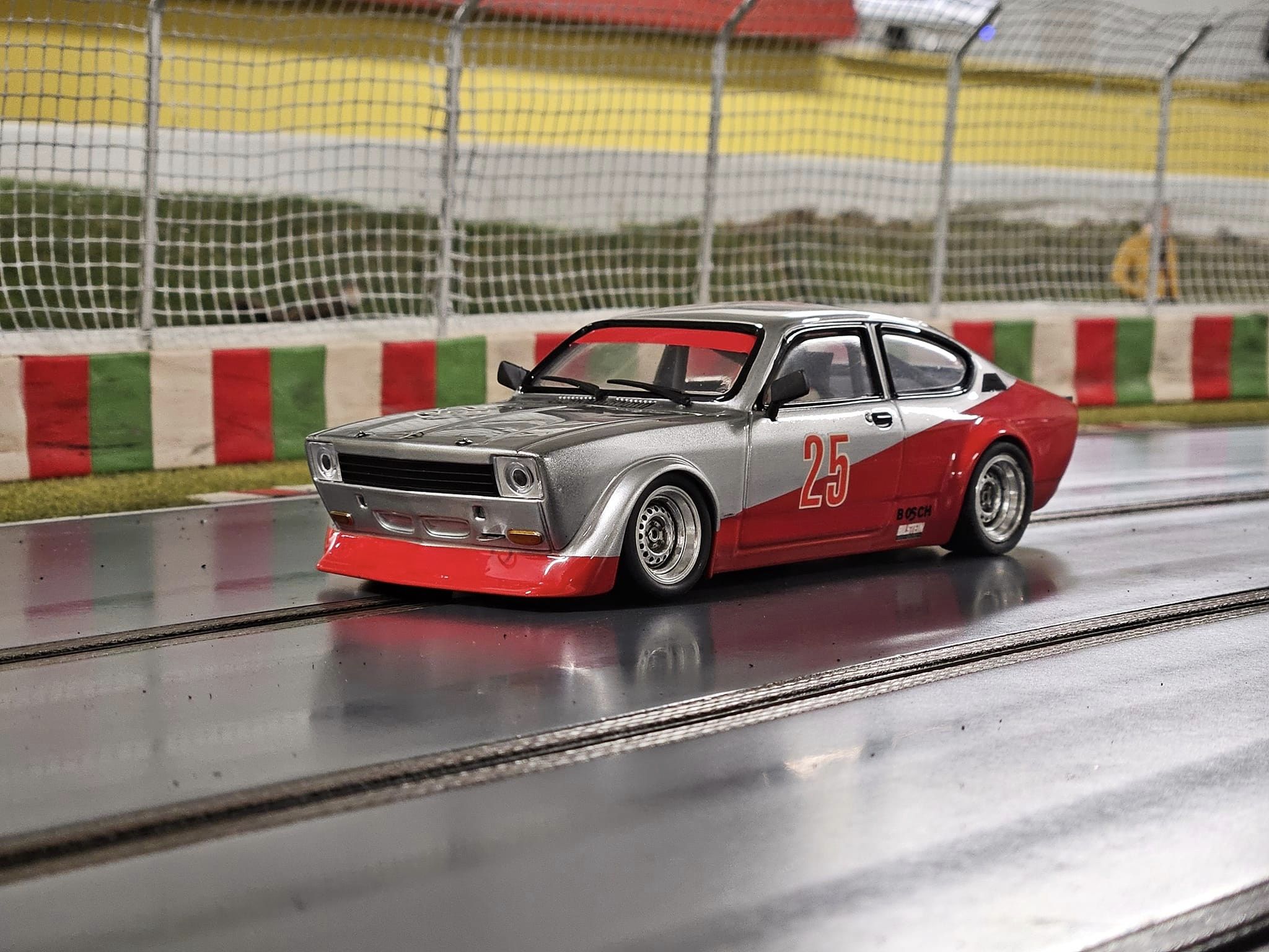 Zoals bij treinen en statische modelauto’s bestaan er op de racebaan verschillende schalen. De meest populaire zijn 1/64 welke in Amerika veel voorkomt en 1/32 die in Europa meer wordt gebruikt en er is nog een grotere 1/24 schaal, die gedetailleerder is, maar lastiger rijdt. Detaillering is bij veel hobbyisten van belang en normaal gesproken zul je bij hen niet de in de speelgoedwinkel verkrijgbare auto’s vinden, of het moet zijn om de kinderen bezig te houden die vaak door deze hobby worden aangetrokken. Je wilt immers niet je auto van €80,- binnen vijf minuten in schroot zien veranderen. Ik heb meestal een stuk of twintig zogenaamde “raggers” op de baan staan, spul dat ik voor weinig op Marktplaats heb gekocht en waar alle spiegels en spoilers al af liggen, de mooie exemplaren staan achter slot en grendel in een vitrinekast. Naast de verzamelaars die af en toe een potje racen bestaat ook nog een klein gezelschap die echt fanatiek competitie rijdt. Zij hebben vaak speciaal geprepareerde auto’s die bestaan uit een verstelbaar metalen frame met daarop een simpele kap, vergelijkbaar met Nascar racing. Hier is detaillering weer ondergeschikt.