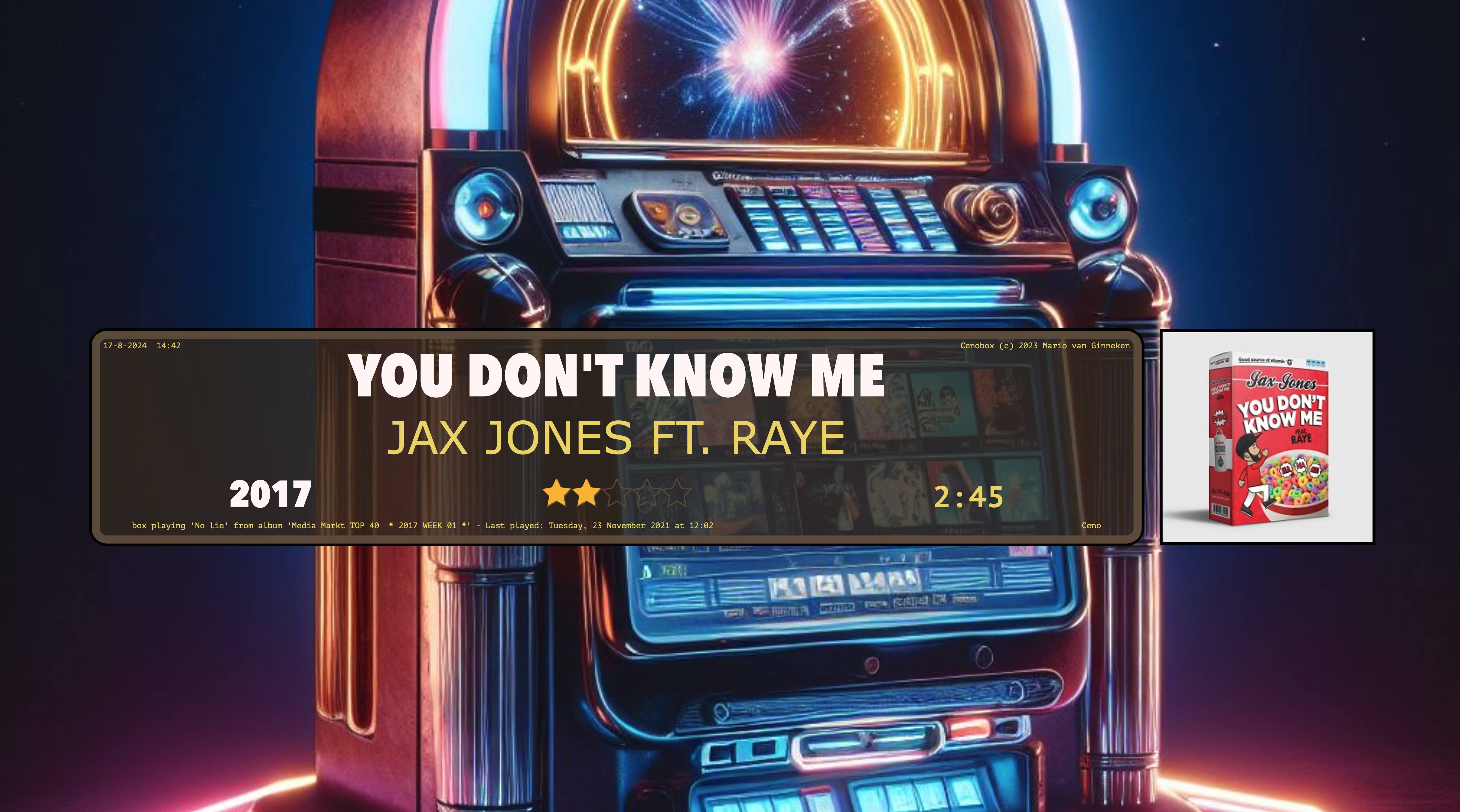 - Doing all this in an attractive way by using a screensaver with background pictures and a jukebox title strip showing the track’s Title, Artist, Year, Rating and Mood. The track’s cover art is also shown if it’s available and if it’s not, Cenobox will try to scrape it from the Discogs website. You can add your own background pictures and add background art for your favorite artists which are shown when the artist is playing.