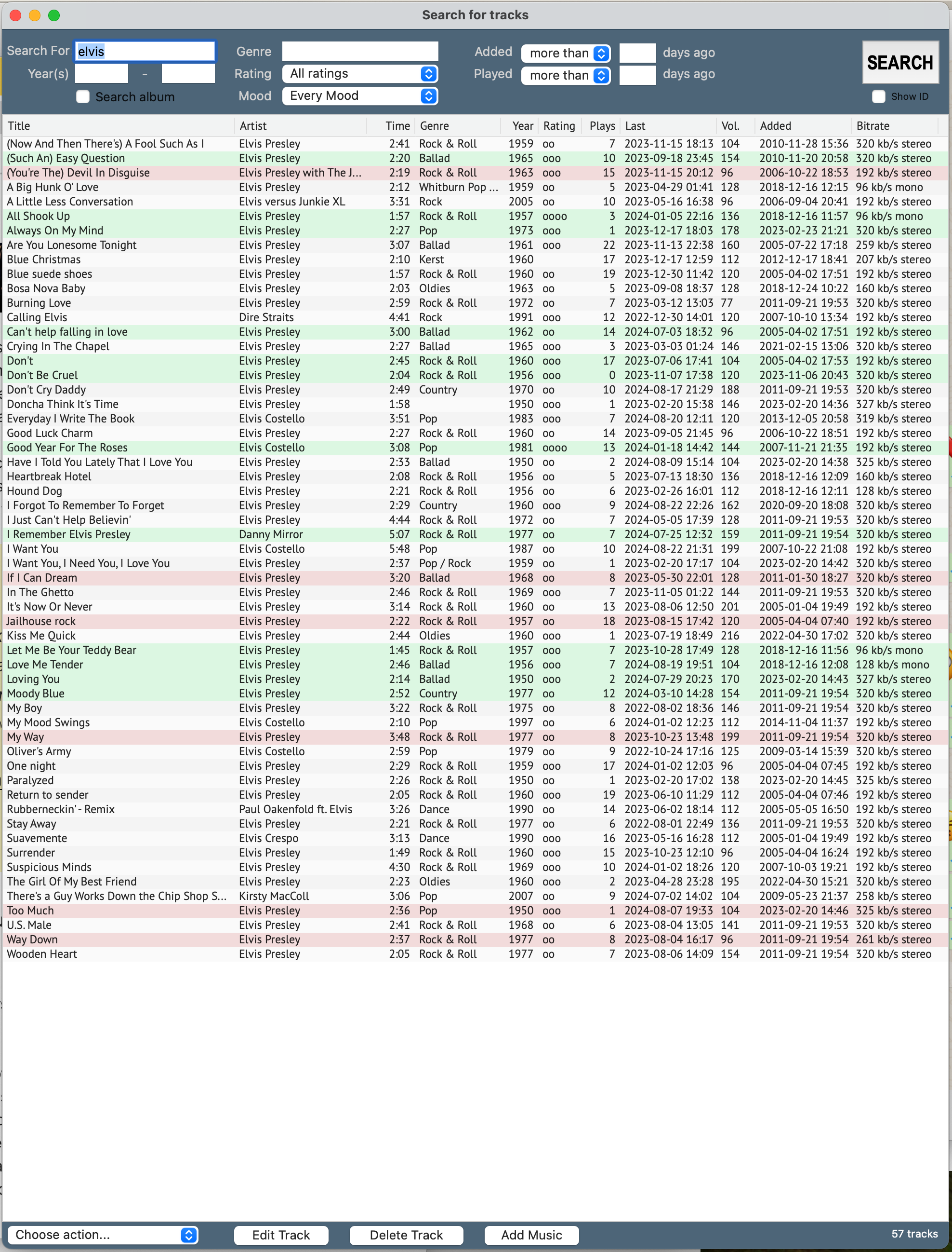 - Look at the “Search for tracks” window: it shows you all the tracks in your library based on the artist of the track you just selected, so you can see if you have this track in your library already and if you do, you can compare quality, bit rate, etc. vy right clicking on the file and choose “Edit track(s)”.